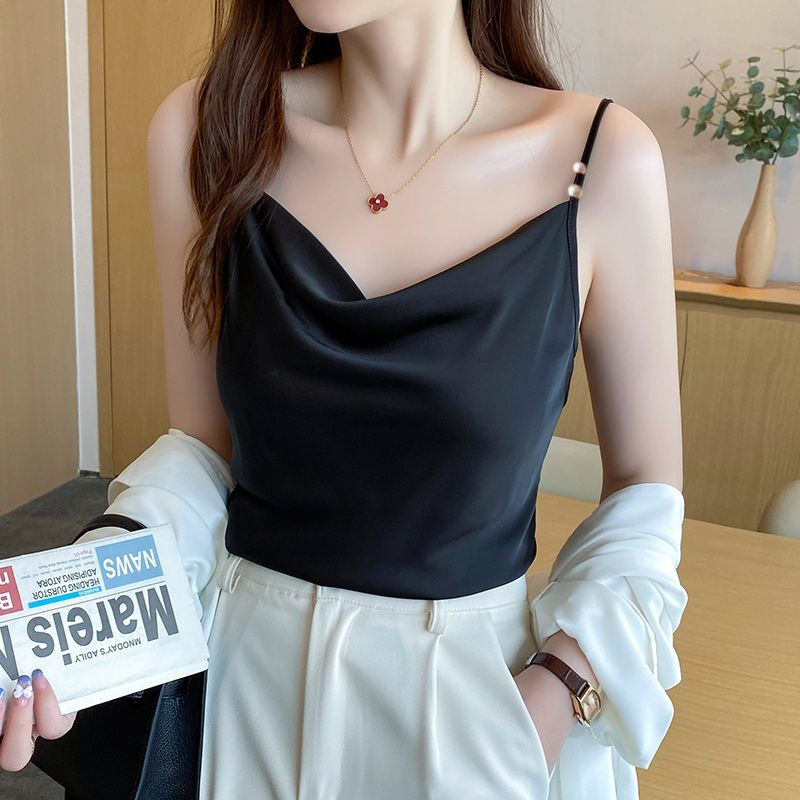 ✨Áo 2 dây cổ đổ thiết kế đính ngọc trai xinh xắn, Áo nữ lụa satin cao cấp, thoáng mát - New Design AO0015