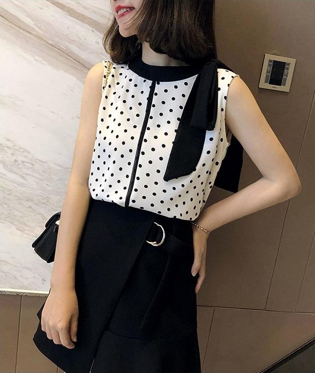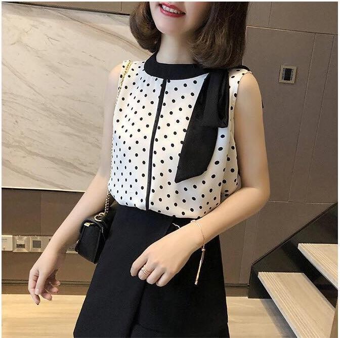 ÁO CHẤM BI SÁt NÁCH CỔ PHỐI NƠ SIÊU XINH mớiGiá chỉ 98.800₫! #dam #aotrevai #aosominu