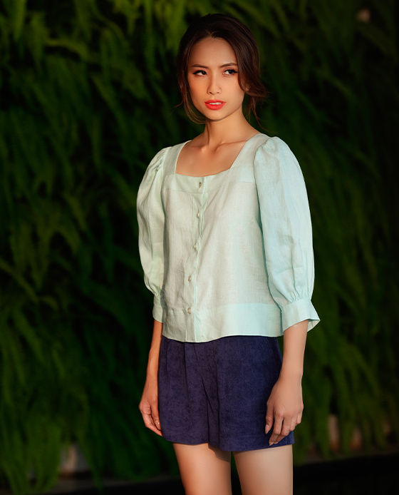 Áo Croptop Linen Aqua TOP132 Thời trang thiết kế Hity
