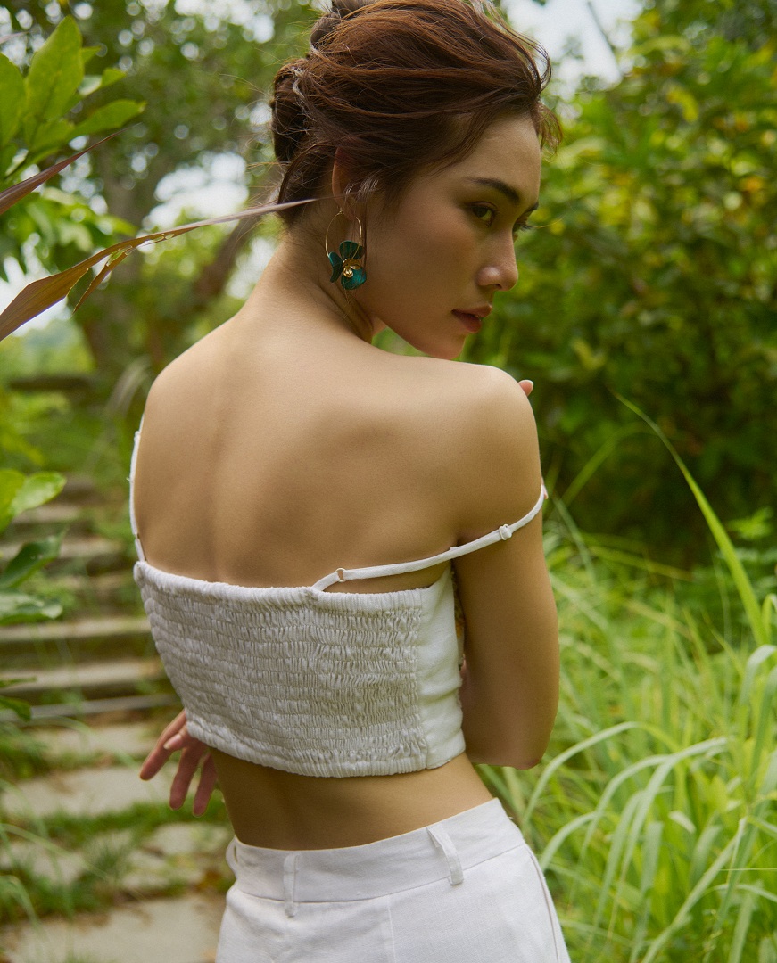 Thêu tay hoạ tiết Mơ độc bảnKiểu dáng croptop hở bụng Dây vai có khoen điều chỉnh độ dài dâyỨng dụng kỹ thuật thun chỉ smock sau lưng giúp ôm trọn vòng ngực, tạo dáng ngực đẹp và thoải mái vận độn...