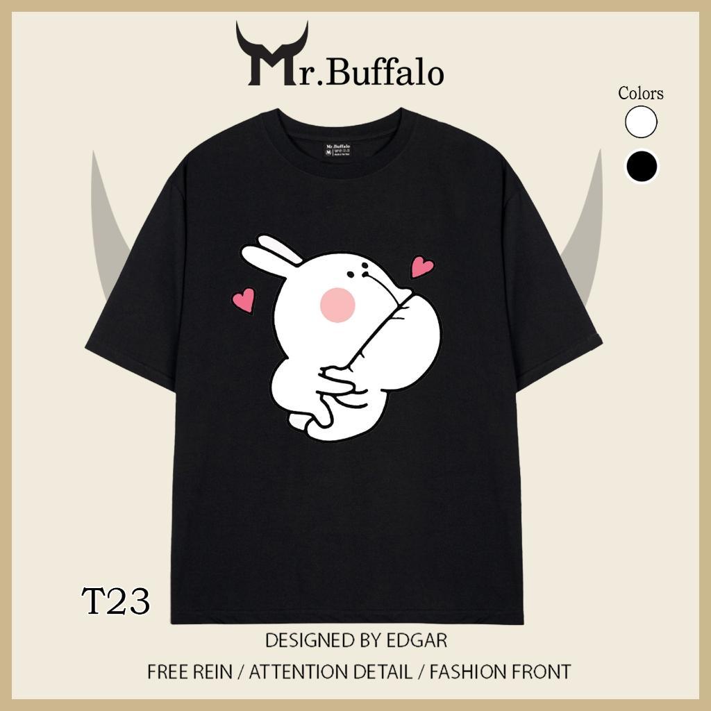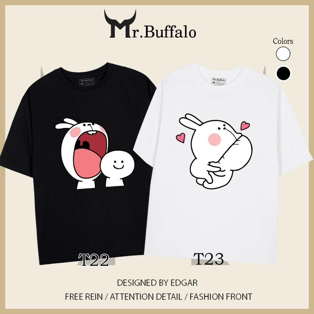✨Áo đôi , áo thun cặp nam nữ tay lỡ Unisex thỏ ngoạm đầu form rộng vải cotton 100% T22T23 - Mr.Buffalo