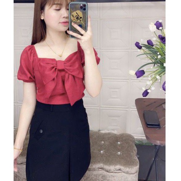 ÁO CỔ TRÒN THẮT NƠ SAU Phom dáng ao chuẩn đẹp, Chất liệu: tuyết sa, vải nhe, dày dặn, dễ chịu, Là mẫu thiết kế của Thời trang bobo nên đường kim mũi chỉ