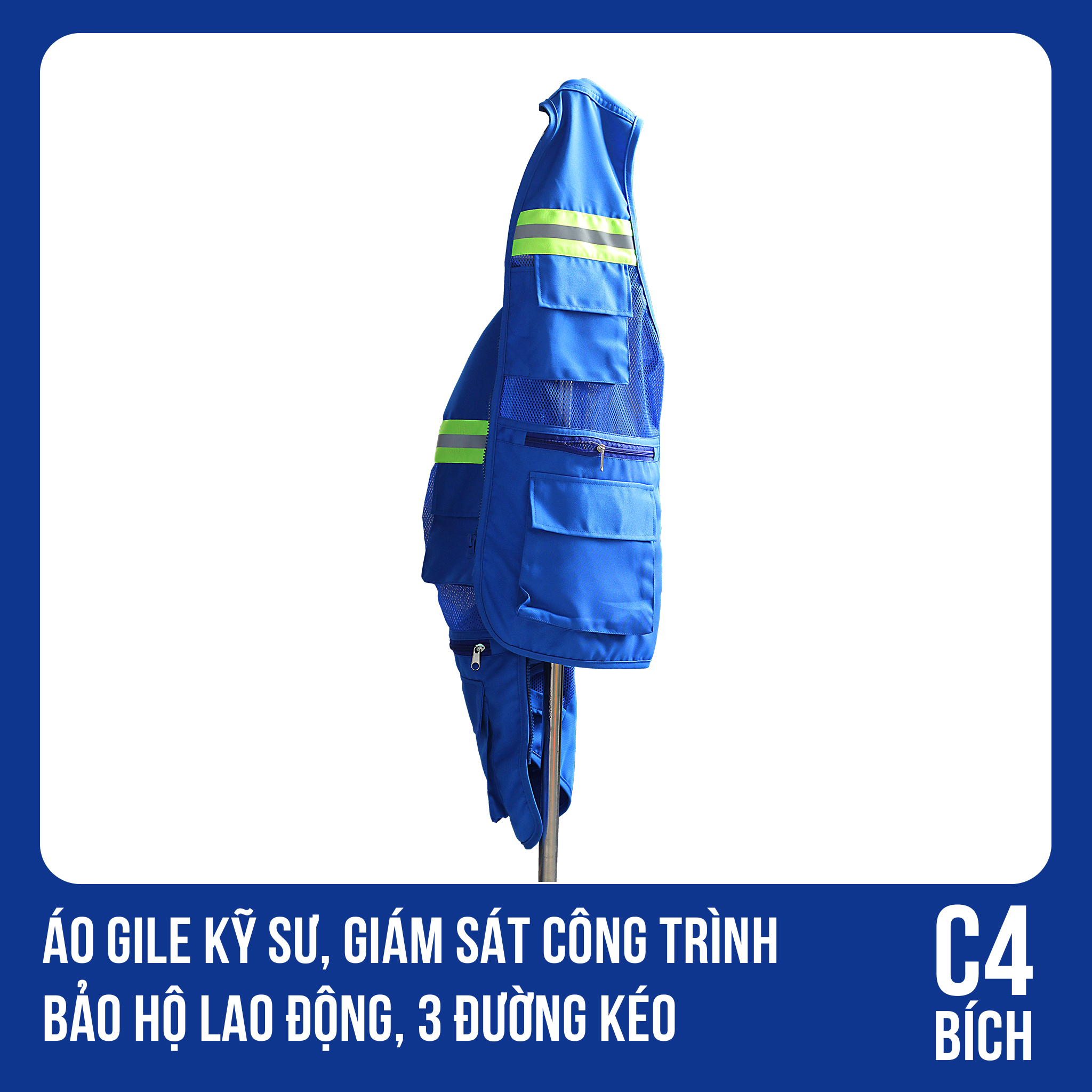 ✨Áo Gile Kỹ Sư, Giám Sát Công Trình, Bảo Hộ Lao Động, 3 Đường Kéo - Mã C4 (BÍCH)