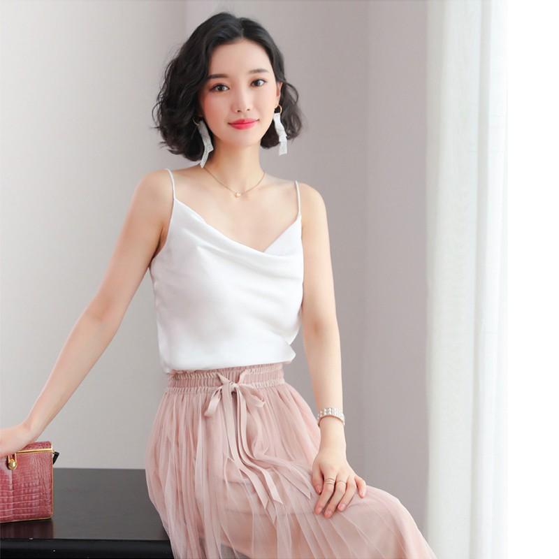 Áo 2 dây cổ đổ lụa satin cao cấp