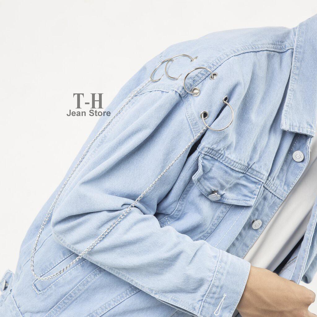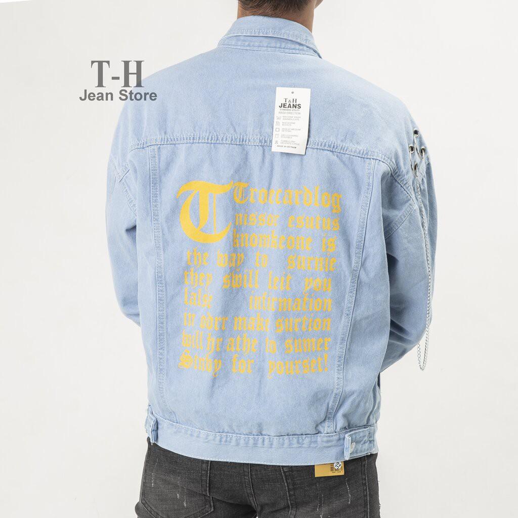 ✨Áo khoác jean nam móc xích chữ vàng, thời trang năng động cá tính