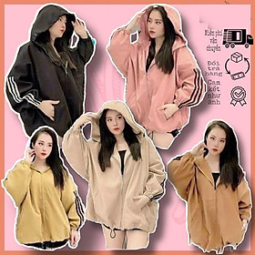 Áo khoác nữ nỉ chống nắng Croptop 3 Sọc Dáng Rộng Mũ To 3 sọc là sự lựa chọn hoàn hảo cho các cô gái yêu thích phong cách thời trang năng động và cá