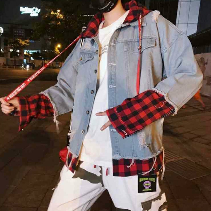 ✨Áo khoác jean phối nón sọc caro Mã: NK1512 - XANH NHẠT