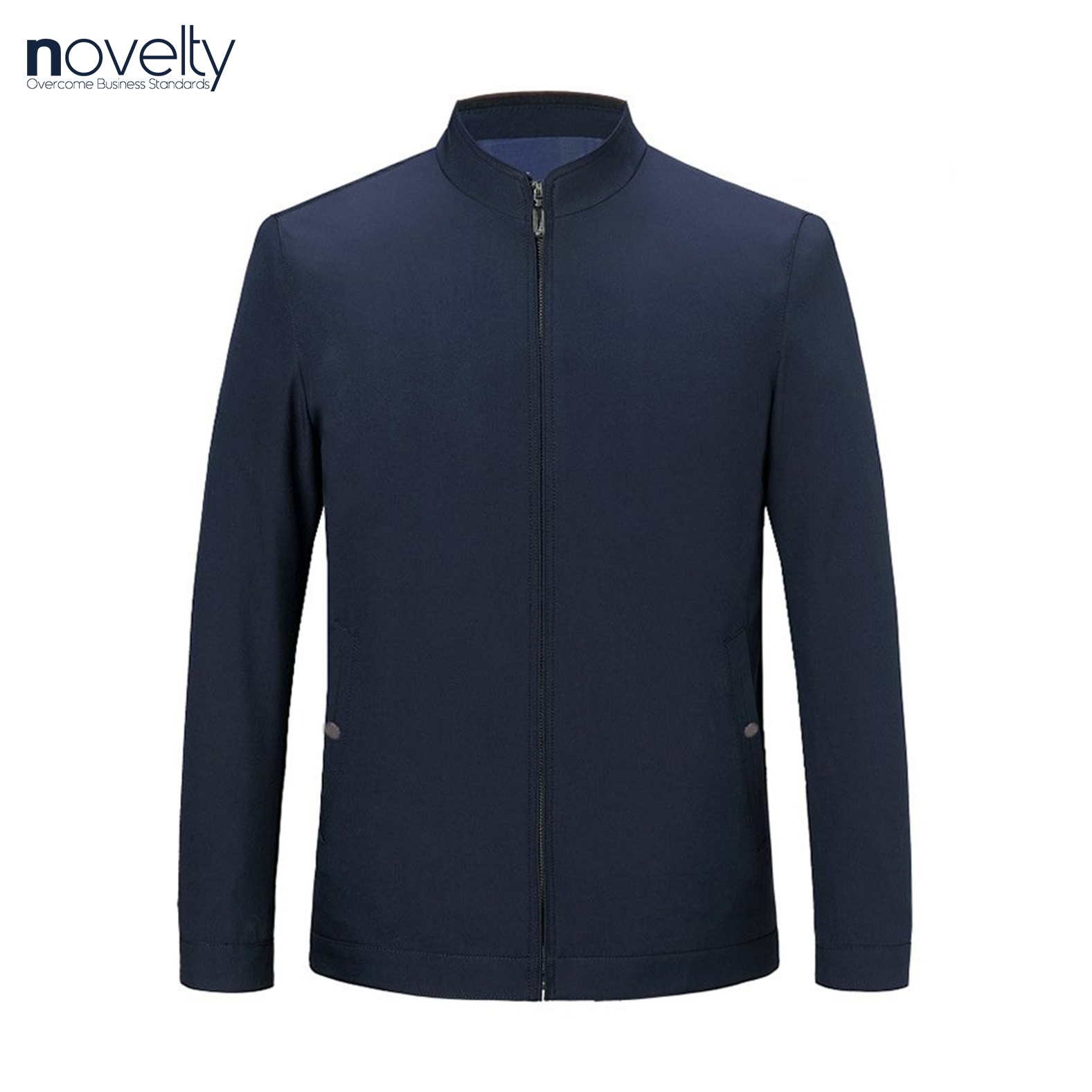 Áo Jacket Nam Boning Cổ trụ Novelty màu đen trơn