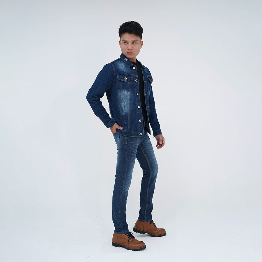 Thông tin chi tiết của sản phẩm áo khoác jean nam màu xanh cơ bản cào xước - Xuất xứ: Việt Nam - Chất liệu : Jean dệt cực chuẩn, không nhăn, có độ bền
