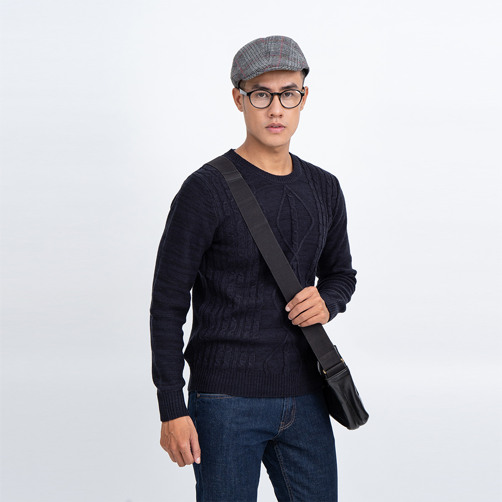 Áo len tay dài cổ tròn hoa văn hình thoi dành cho nam