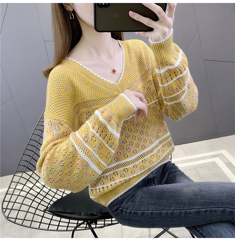- Áo len nữ cổ V rút dây trước 35 được thiết kế thanh nhã với kiểu dáng trẻ trung - Áo len nữ, áo nữ, áo kiểu được may từ chất liệu cao cấp