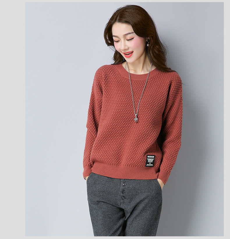 Áo len nữ dài tay cổ tròn đính nơ bướm