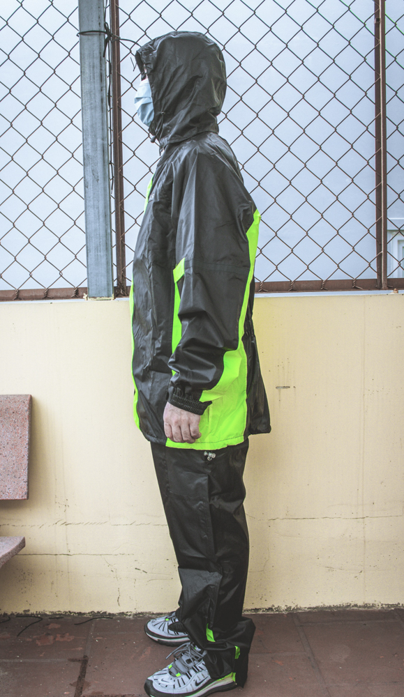 Thiết kế Nón trùm đầu rời và Phản quang an toàn Sau lưng áo được in dãy phản quang nhằm giúp người mặc di chuyển an toàn hơn khi đi lúc trời tối. Màng nhựa