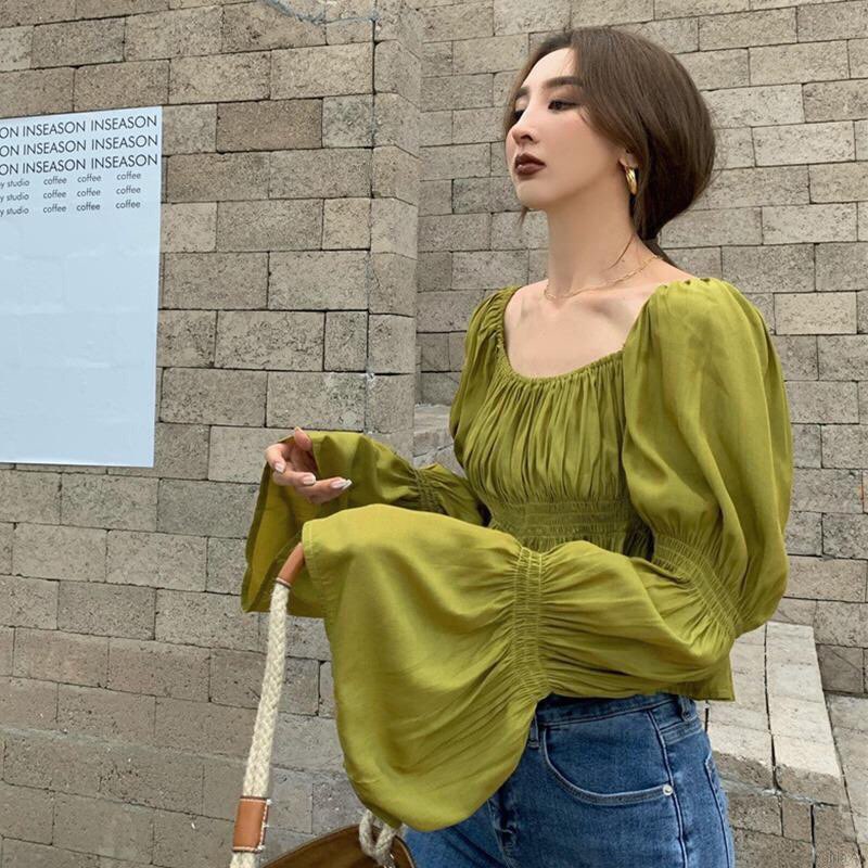✨Áo nữ thời trang cổ vuông thời trang Hàn Quốc - Hàng cao cấp (Xanh lá)