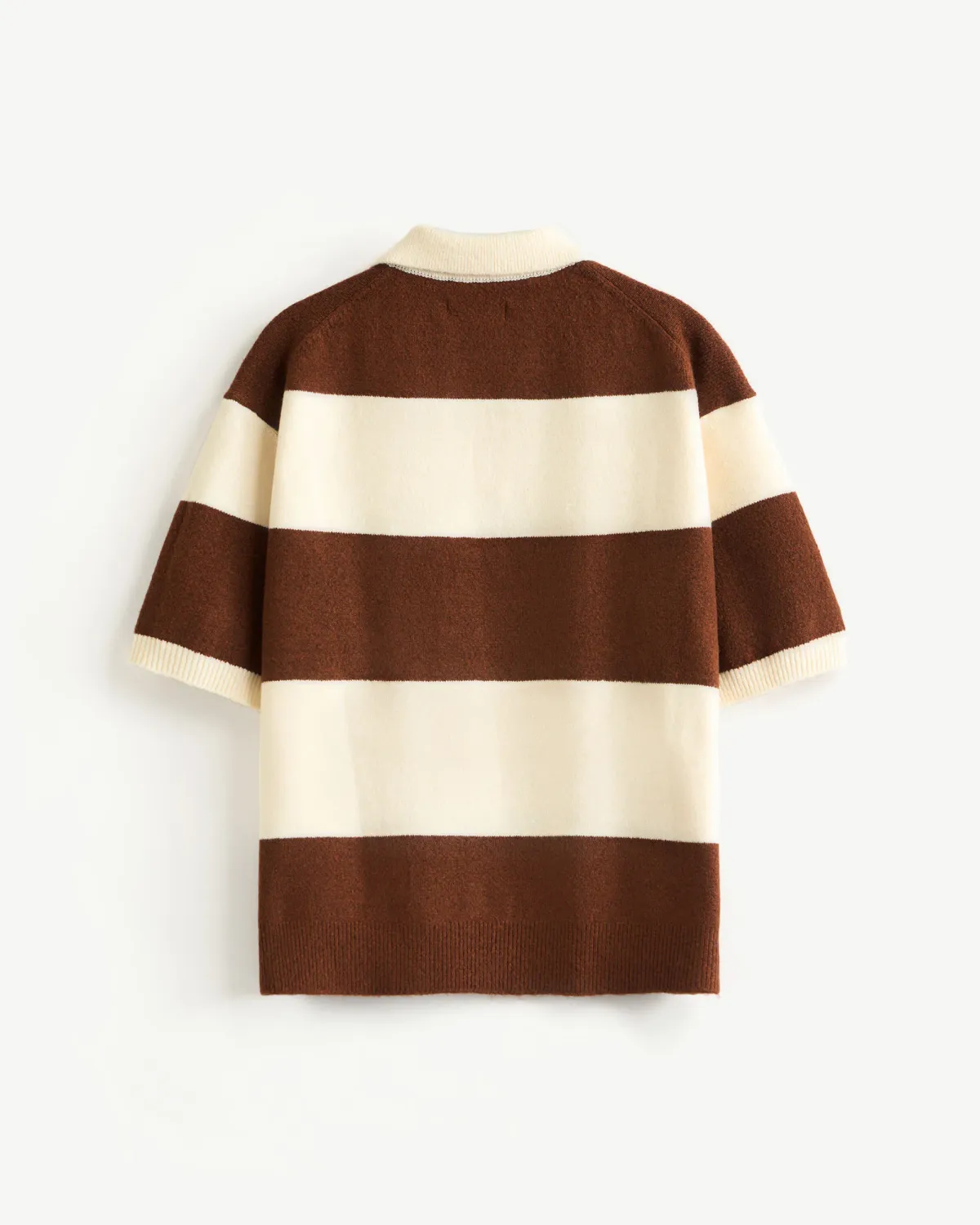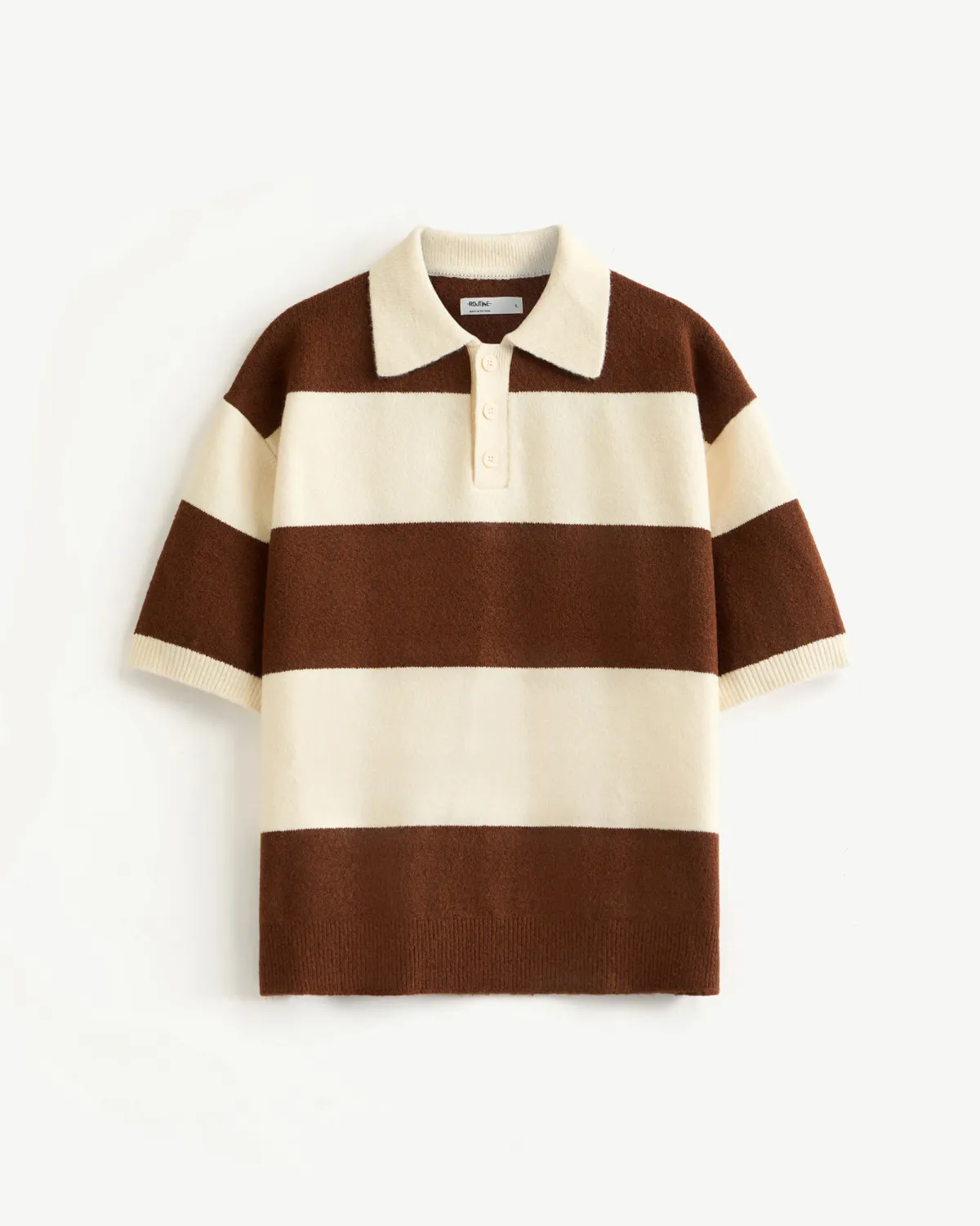 Áo polo dệt kim tay ngắn nam kẻ sọc. Loose - ROUTINE 10F25KNI008