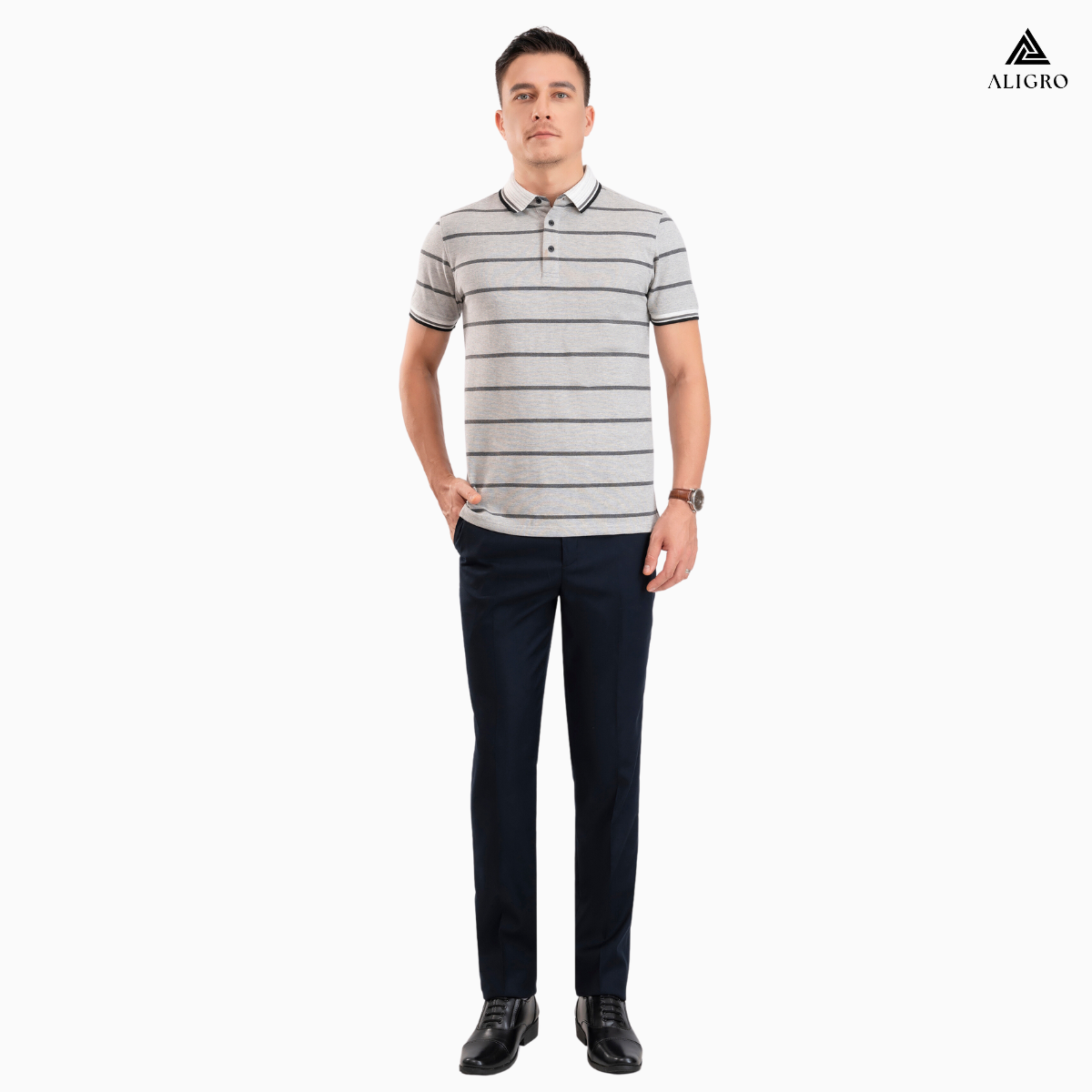 ✨Áo Polo nam ngắn tay kẻ ngang màu ghi ALGPLO84