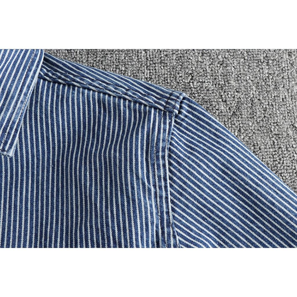 Áo sơ mi denim sọc phong cách Retro_Biker_Army Áo sơ mi Wild Casual Màu đang hot lắm ạ Chất vải denim sọc cực bụi , phom chuẩn mặc rất đẹp ạ Size: M: từ 55-65 kg L: từ 65 - 73 kg XL: từ 73 -80 kg XXL: từ 80 - 87 kg XXXL: trên 87 kg