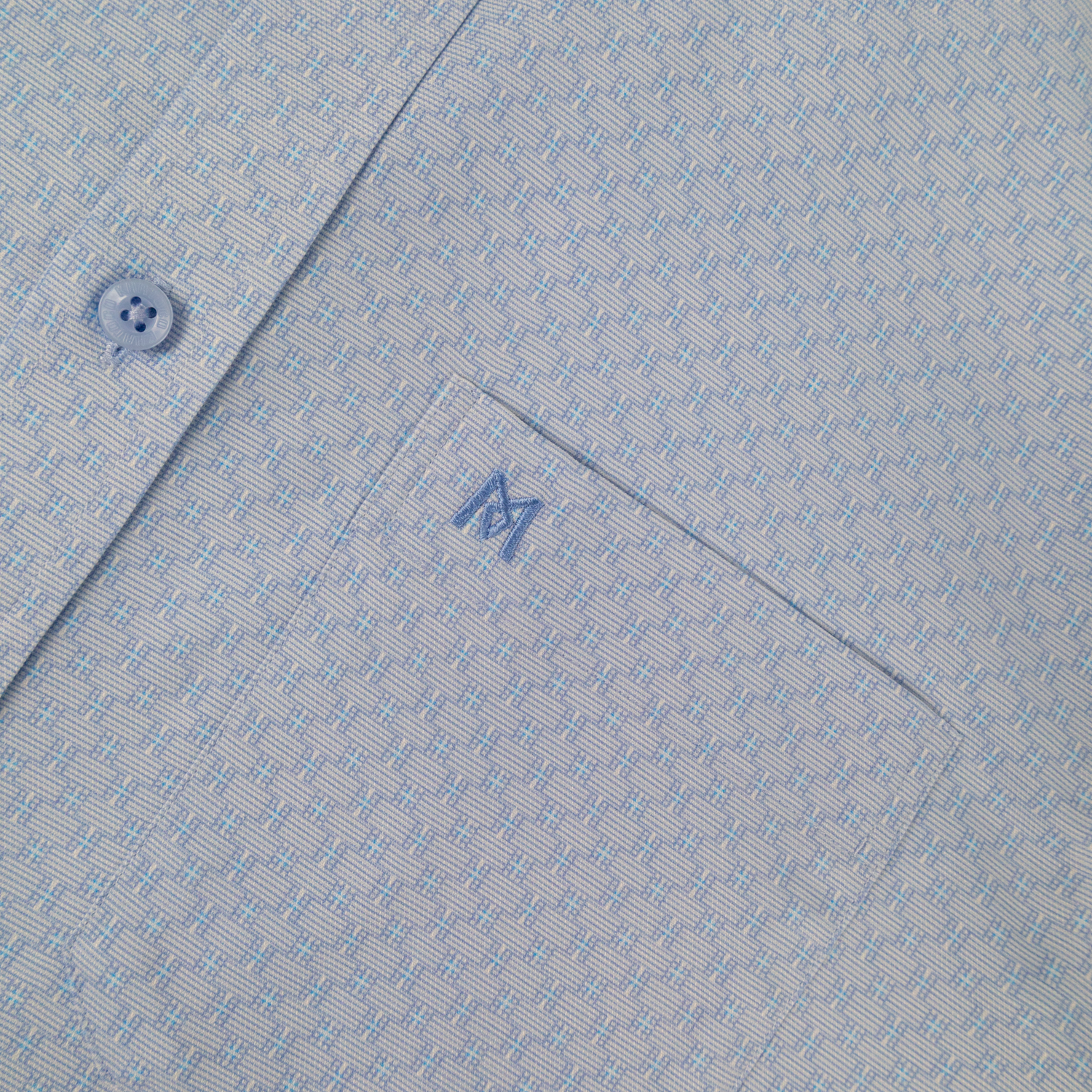 (V) MÔ TẢ: Form Taylor, tai dài Form áo tiêu chuẩn với form áo rộng vừa phải, không ôm sát cơ thể, bó nhẹ ở vùng eo và tay áo. Độ rộng vùng ngực và nách cũng sẽ fit hơn với cơ thể. Không quá rộng như form áo cổ điển. Màu vải nhã nhặn và trung tính dễ dàng phối trang phục tạo sự lịch lãm, nam tính Nút ton-sur-ton khắc logo đẹp mắt phối trọn vẹn màu áo. Logo thêu sắc nét trên túi áo. Chất liệu:50%POLYESTER- 24%COTTON-2%SPANDEX- 24%VISCOSE(BAMBOO) |Mềm mịn|Thấm hút |Kháng khuẩn|Độ thoáng khí cao|Chống tia UV|Chống nhăn|Chống co rút |Nhanh khô|Dễ vệ sinh làm sạch|Đứng phom áo Màu sắc : Màu Xanh họa tiết