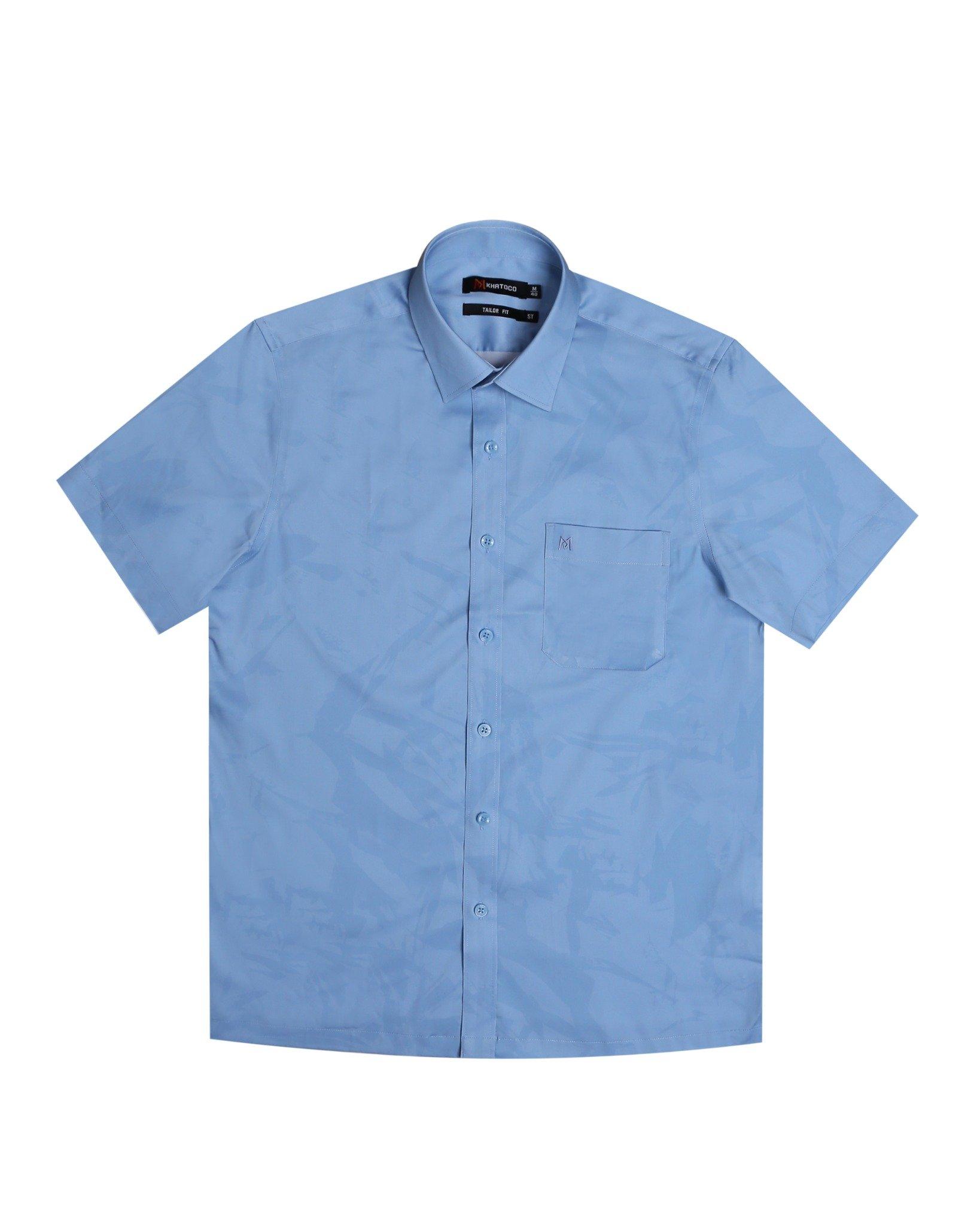 Áo sơ mi nam tay ngắn lai ngang – Khatoco - Mã hàng: A1MN538T2 - Chất liệu: 75% Polyester + 22% Viscose (Bamboo) + 3% Spandex → Vải mềm mại, thoáng mát, co giãn nhẹ,
