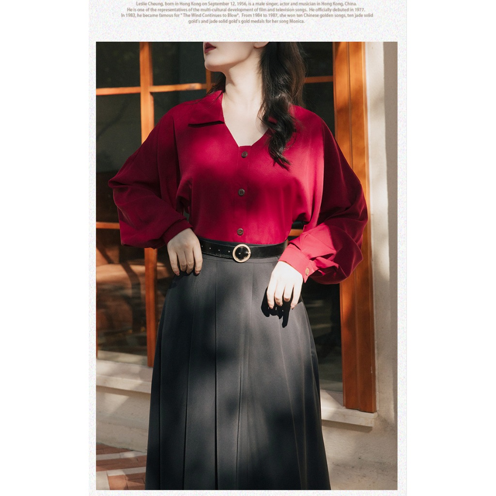 Áo sơ mi form rộng tay dài có size 60-96kg, Áo sơ mi bánh bèo bigsize mặc đồ Tết đẹp che khuyết điểm
