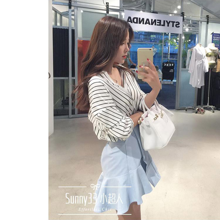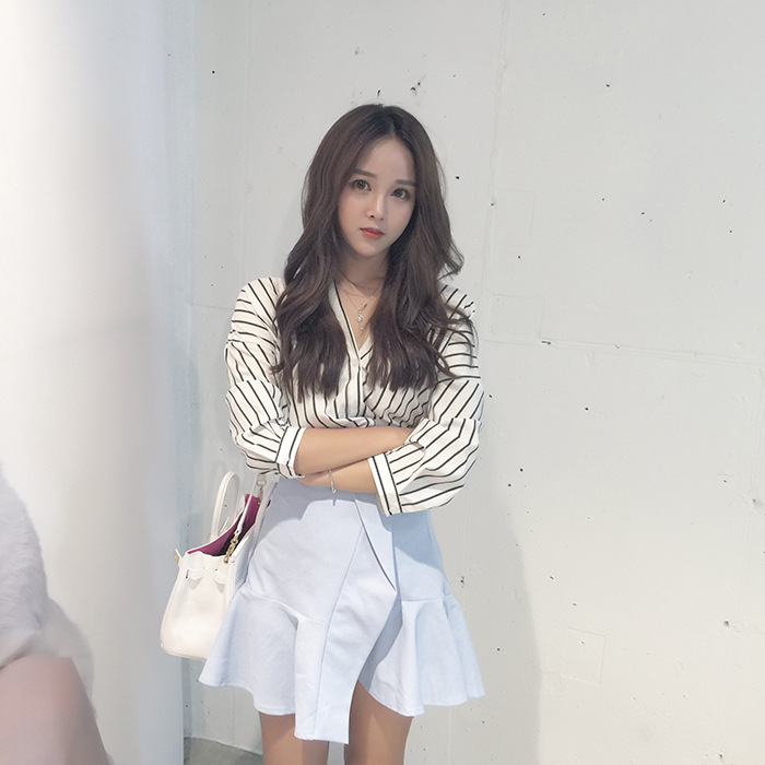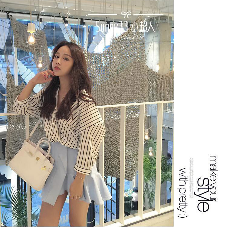 Áo sơ mi sọc phối nơ sau xinh xắn Mô tả Size S: sản phẩm vòng eo rộng 64cm - 66cm, vòng ngực rộng 84cm-86cm, vòng mông rộng 86cm-88cm Size M: sản phẩm vòng eo