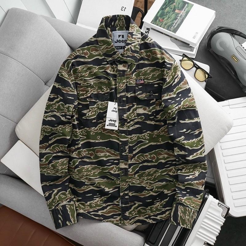 Hàng hiếm cho anh em đây ạ Áo sơ mi quân đội Jeep Màu đang hot lắm ạ Chất kaki được wash acid cực bụi , phom chuẩn mặc rất đẹp ạ Size: M: từ 55-65 kg L: từ 65 - 70 kg XL: từ 70 -75 kg XXL: từ 75 - 80 kg XXXL: trên 80 kg Màu nguỵ trang thế hệ mới nhất năm nay nhé