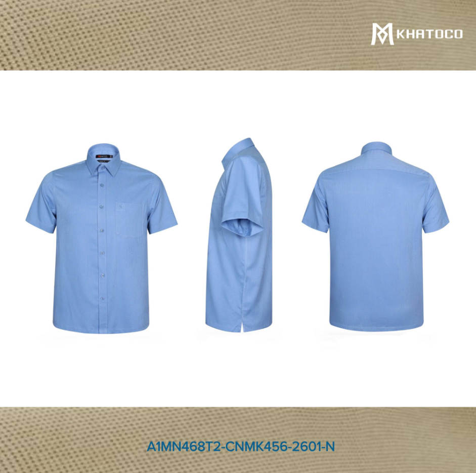 Áo sơ mi nam tay ngắn lai ngang – Khatoco - Mã hàng: A1MN538T2 - Chất liệu: 75% Polyester + 22% Viscose (Bamboo) + 3% Spandex → Vải mềm mại, thoáng mát, co giãn nhẹ,