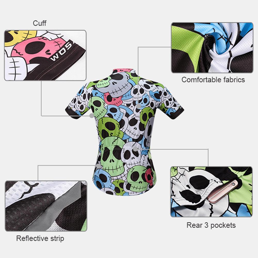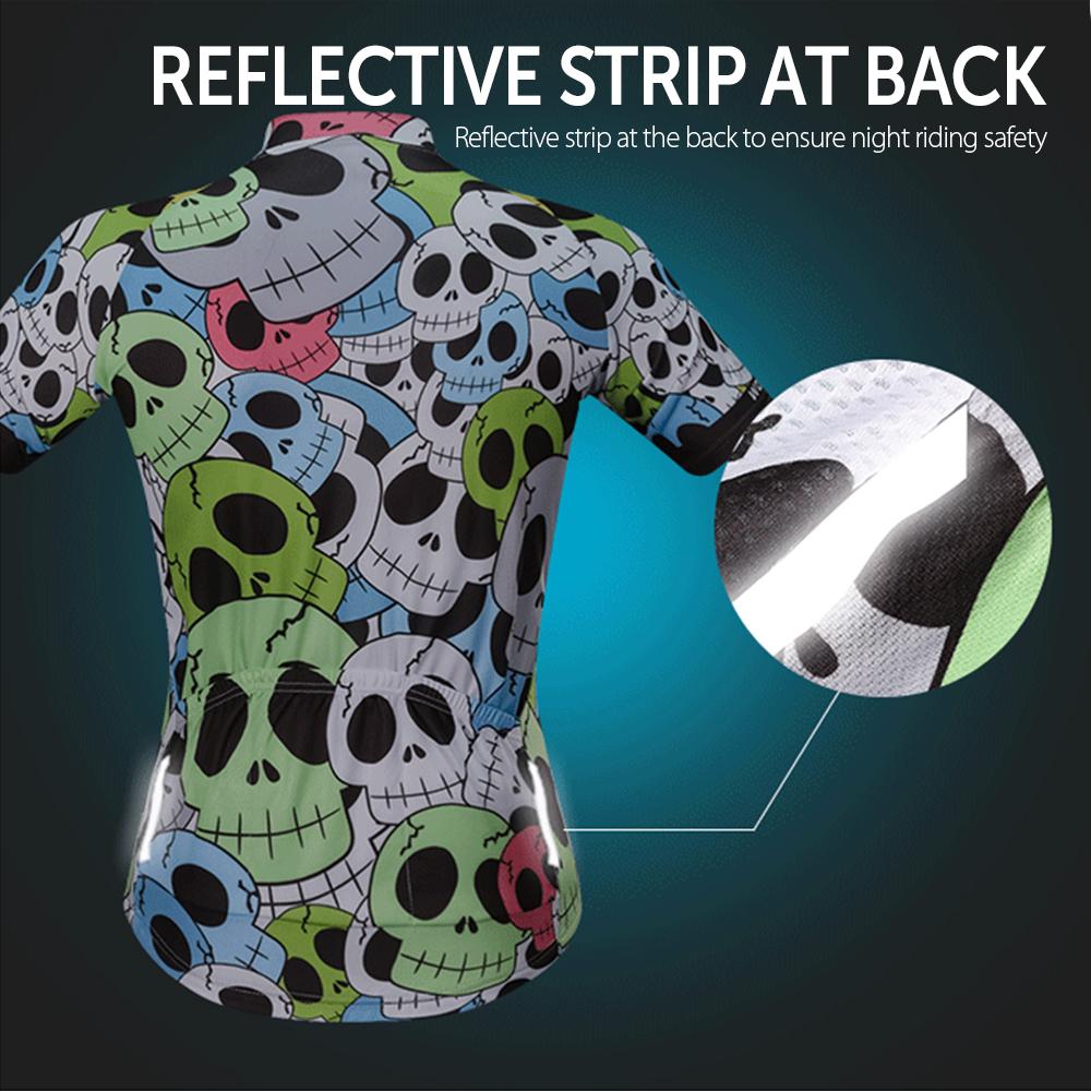 This cycling jersey is lightweight, quick drying and moisture-wicking. The mesh fabric makes it more breathable, keeping you cool and comfortable when riding the bike. It is colorful printed, very stylish and sporty.
