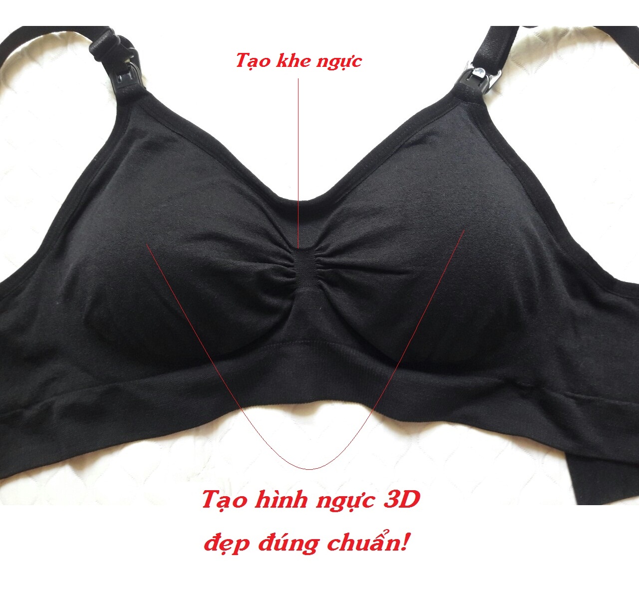 Áo lót cho con bú với thiết kế mở khuy phía trên cho con bú một cách dễ dàng Không có gọng nên có thể mặc áo ngực cả khi ngủ để chống chảy xệ