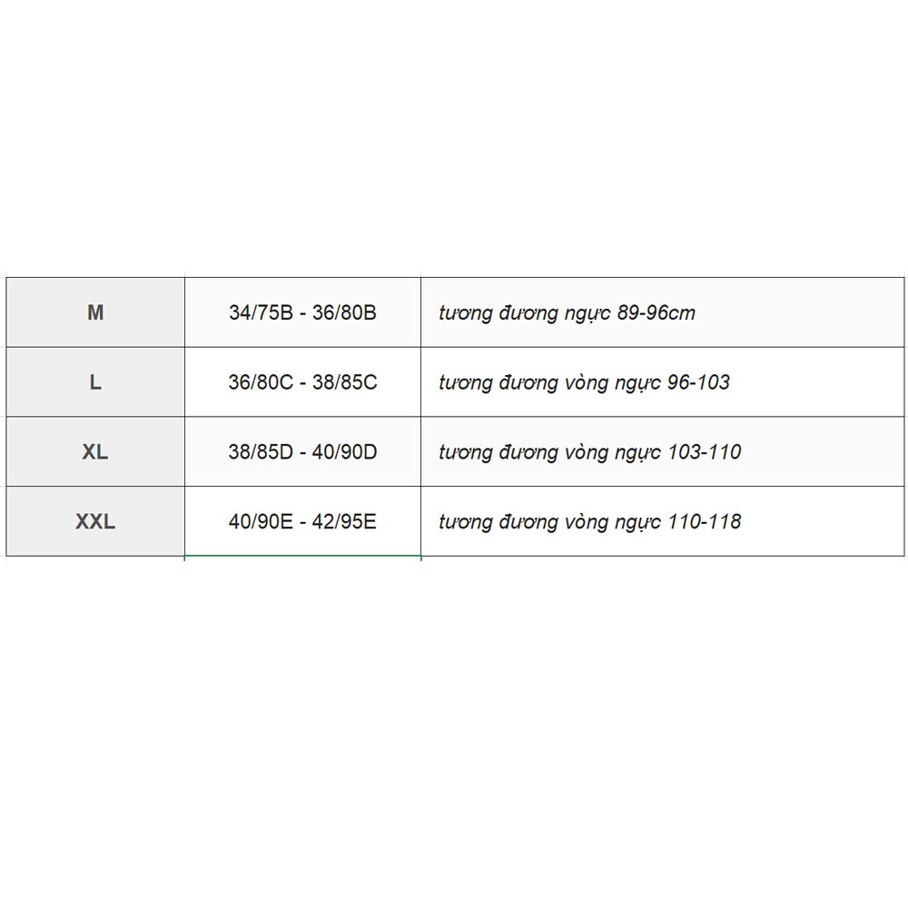 - Có đủ size từ M-XXL, thích hợp cả cho những mẹ vòng ngực cực kỳ khiêm tốn đến những mẹ có vòng một siêu ngoại cỡ.