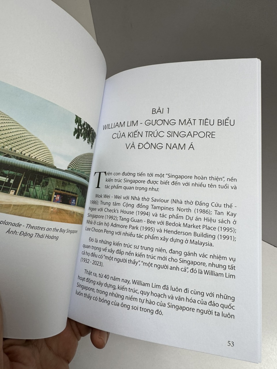 Điều đó thể hiện việc chưa đủ điều kiện để đi sâu nghiên cứu và dành cho hai cường quốc kiến trúc thế giới này hai cuốn sách riêng. Dẫu sao thì đây cũng chỉ là những viên gạch đầu tiên giới thiệu kiến trúc Australia và Singapore. Cuốn sách này nếu được xuất bản thì một số người quan tâm đến những thành tựu to lớn của hai nền kiến trúc này sẽ có một cuốn lược khảo được đến tay. Đây là một cuốn sách Hợp tuyển, đa phần tập hợp từ một số quyển sách đã in, các bài báo đã đăng, có chỉnh lý và bổ sung. Có nội dung công bố từ 20 năm trở lại đây, nên có thể’ có các bài không tương thích với nhau về mặt thời gian nhưng hình thức của các công trình thì dù tuổi đời có khác nhau chúng vẫn đẹp một cách bền vững theo thời gian. Đó cũng là quan niệm của người viết.