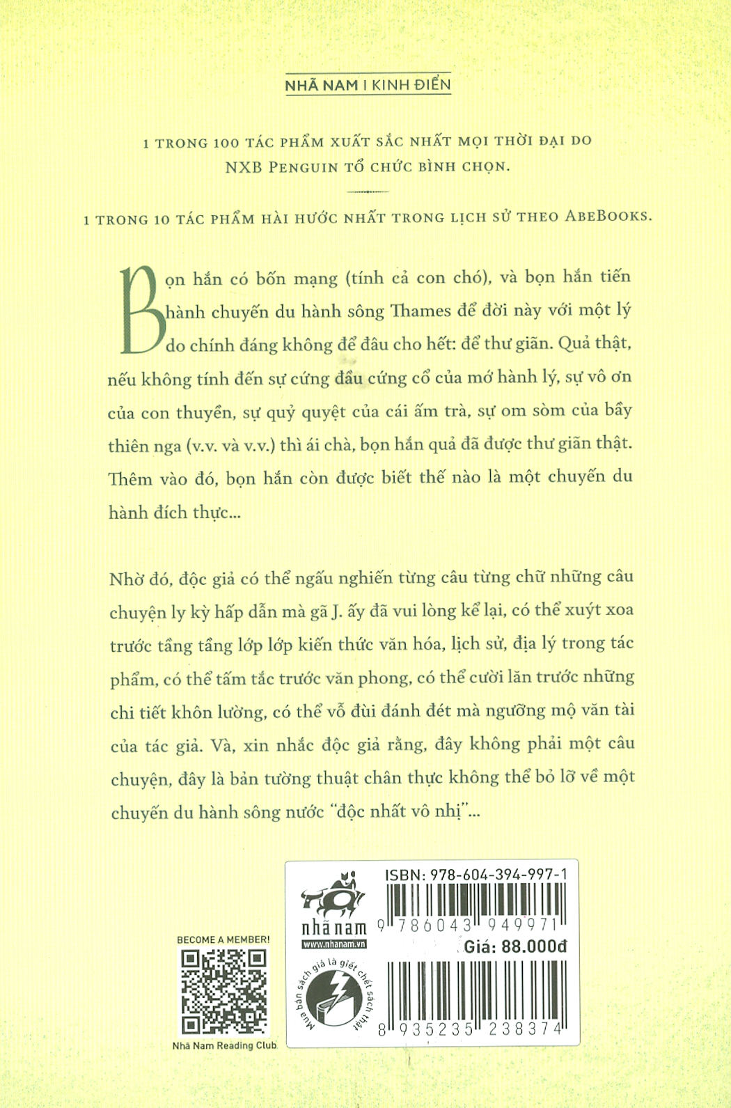 1 trong 100 tác phẩm xuất sắc nhất mọi thời đại do NXB Penguin tổ chức bình chọn1 trong 10 tác phẩm hài hước nhất trong lịch sử theo AbeBooks.Bọn hắn có bốn mạng (tính cả con chó), và bọn hắn tiến h...