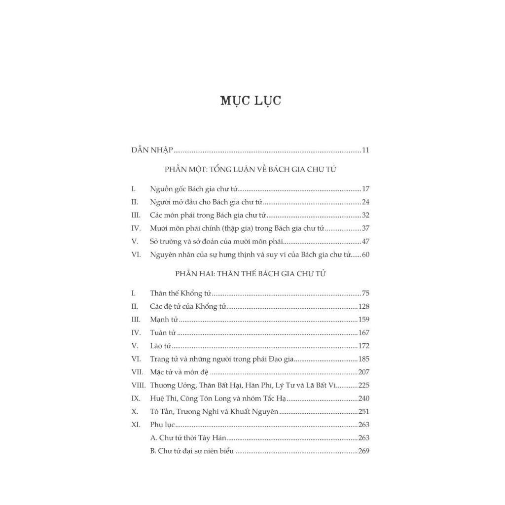 Bách gia chư tử của Thảo Đường Cư Sĩ Trần Văn Hải Minh là bản lược thuật các tư tưởng nổi bật cùng thư tịch kinh điển của từng học phái triết học thời Xuân Thu Chiến Quốc ở Trung Quốc, giới thiệu cuộc đời và triết thuyết của từng nhân vật nổi danh để giúp người đọc có góc nhìn đa chiều về từng vấn đề. Với lối viết gần gũi dễ hiểu thích hợp cho mọi đối tượng độc giả muốn bước vào vườn hoa triết học phương Đông đầy màu sắc và vô cùng thú vị, Bách gia chư tử là cuốn sách nhập môn hữu dụng.