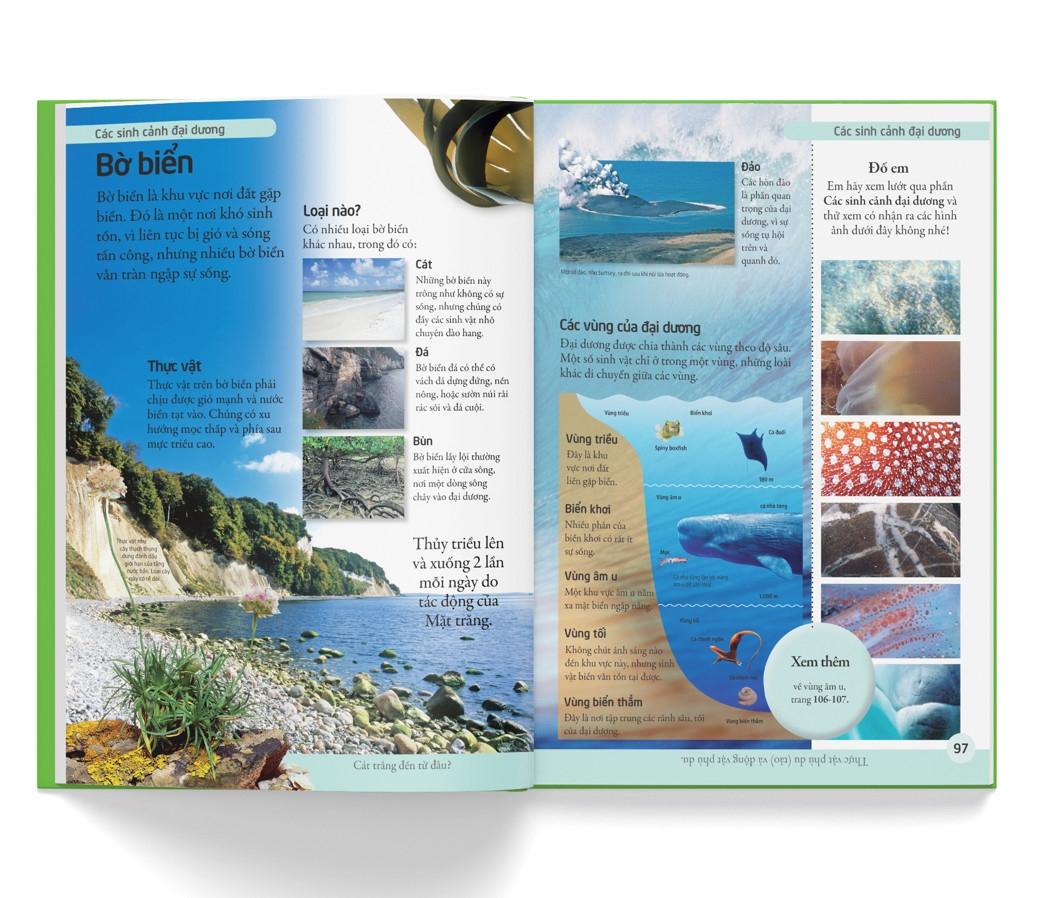 Với các hình minh họa trực quan sinh động, bắt mắt, cuốn sách cung cấp một lượng kiến thức phong phú, súc tích, dễ hiểu, cùng những câu hỏi vui, mẩu thông tin thú vị về thế giới xung quanh. Em sẽ được biết đến cách các loài động thực vật sinh tồn thế nào ở mọi nơi trên Trái đất, từ những hoang mạc khô cằn, tới những cánh rừng mưa tươi tốt.