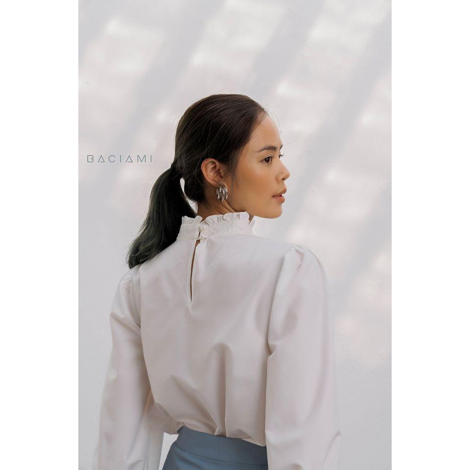 ✨Baciami-Áo Trắng Cổ Lọ Nhún Bèo