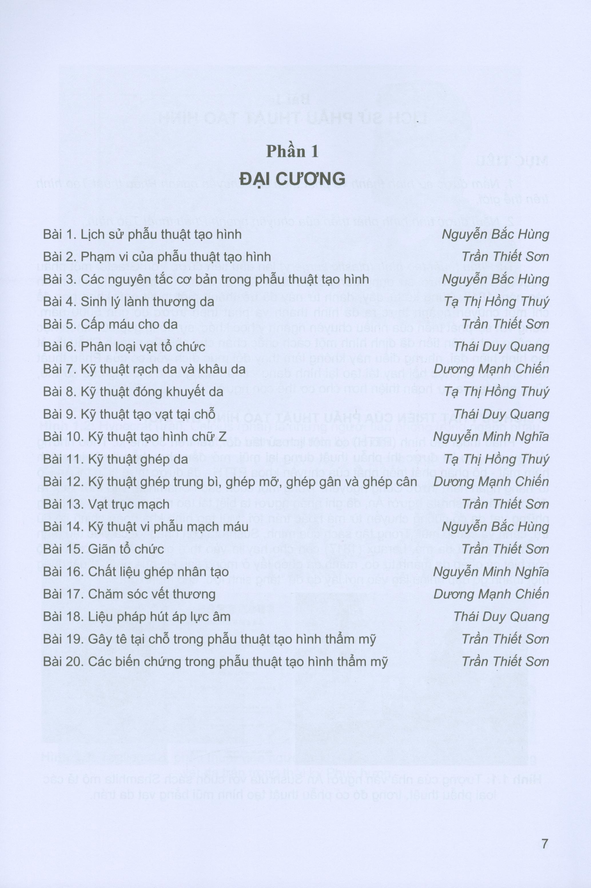Cuốn sách "Bài giảng Phẫu thuật Tạo hình Thẩm mỹ cơ bản" gồm bốn phần. Phần thứ nhất giới thiệu các kiến thức cơ bản hầu như chưa được giới thiệu trong toàn bộ thời