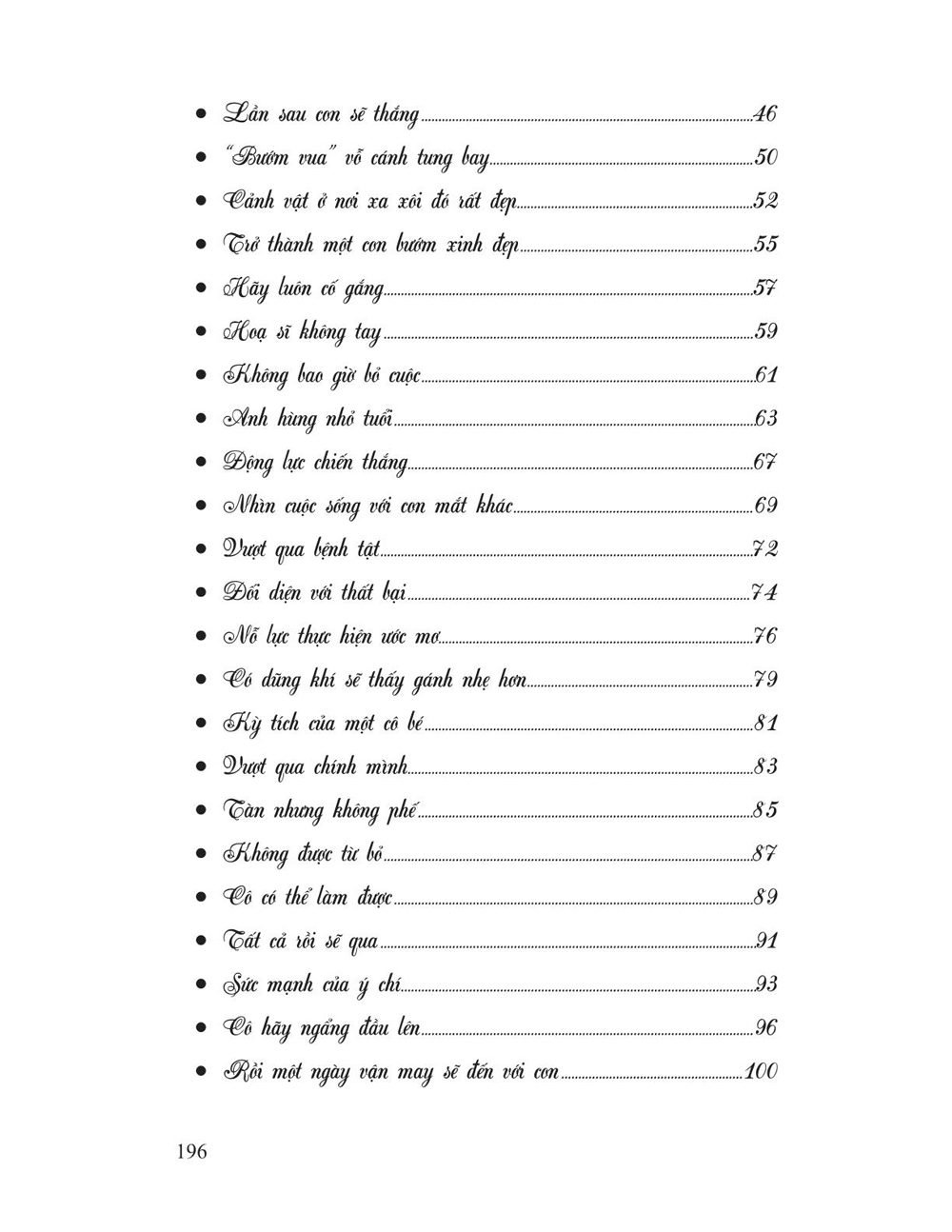 Tập hợp những câu chuyện ý nghĩa về tinh thần vượt lên hoàn cảnh. Mỗi câu chuyện là một số phận, một hoàn cảnh, một trải nghiệm cuộc sống, ngắn gọn nhưng vô cùng xúc tích và giàu ý nghĩa. “Hoàn cảnh hay môi trường sống của bạn là do bạn chọn lựa. Hãy thay đổi cuộc sống của bạn bằng chính bàn tay của mình. Bạn luôn có thể trở thành người thành công trong bất kỳ hoàn cảnh nào.”
