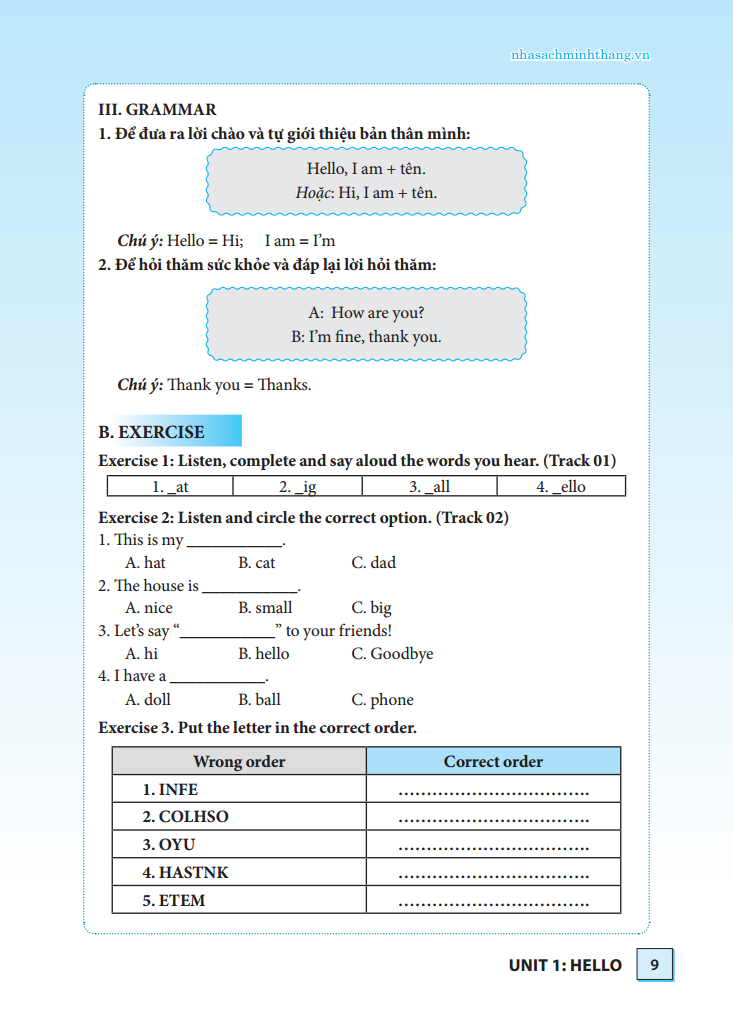 Kết hợp với các nội dung trong sách là đĩa CD với phát âm chuẩn tiếng Anh của người bản ngữ. Chúng tôi tin rằng CD này sẽ hỗ trợ các em rất nhiều trong quá trình rèn luyện kỹ năng giao tiếp tiếng Anh của mình.