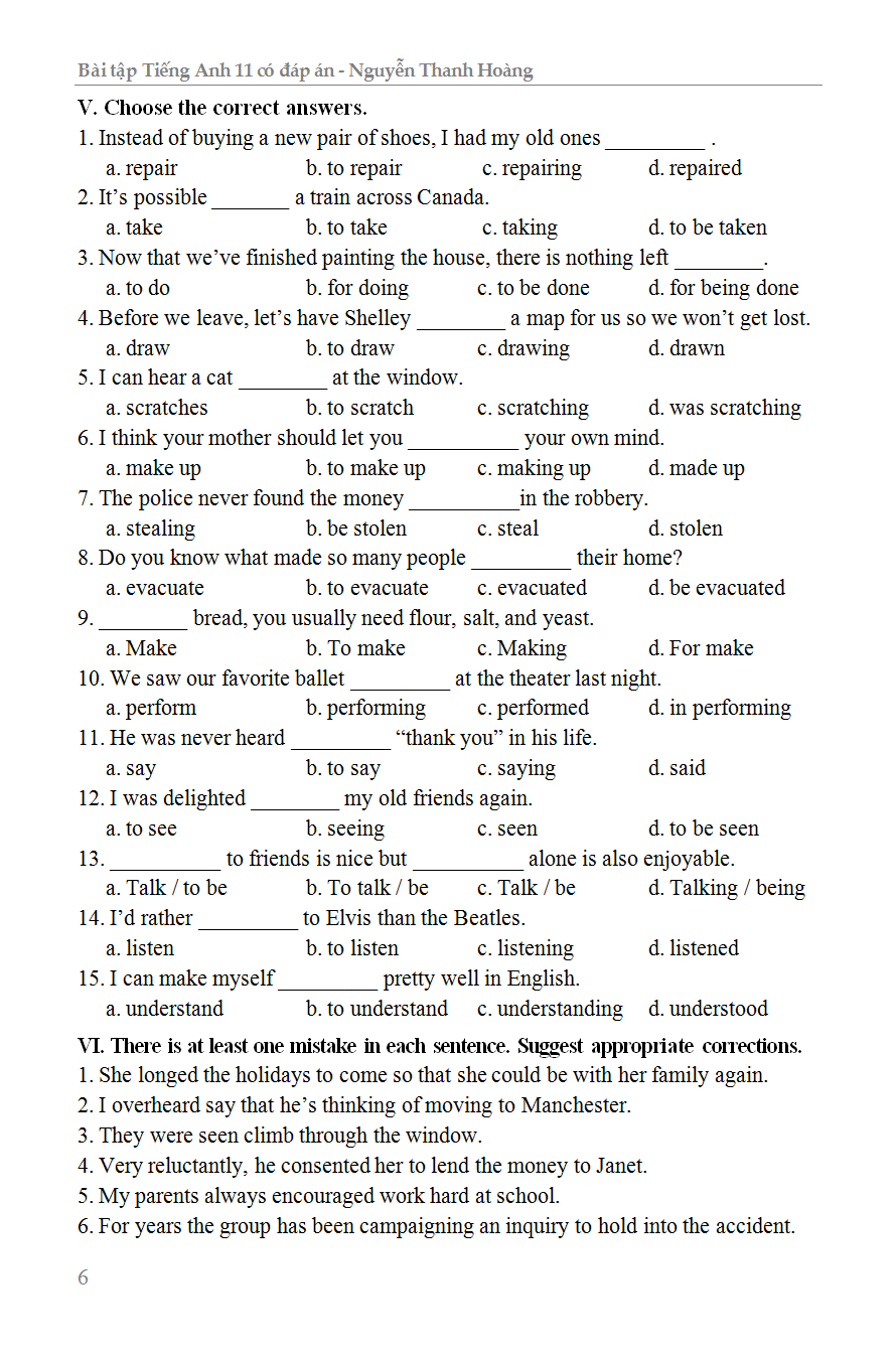 Bài Tập Tiếng Anh 11 Có Đáp Án