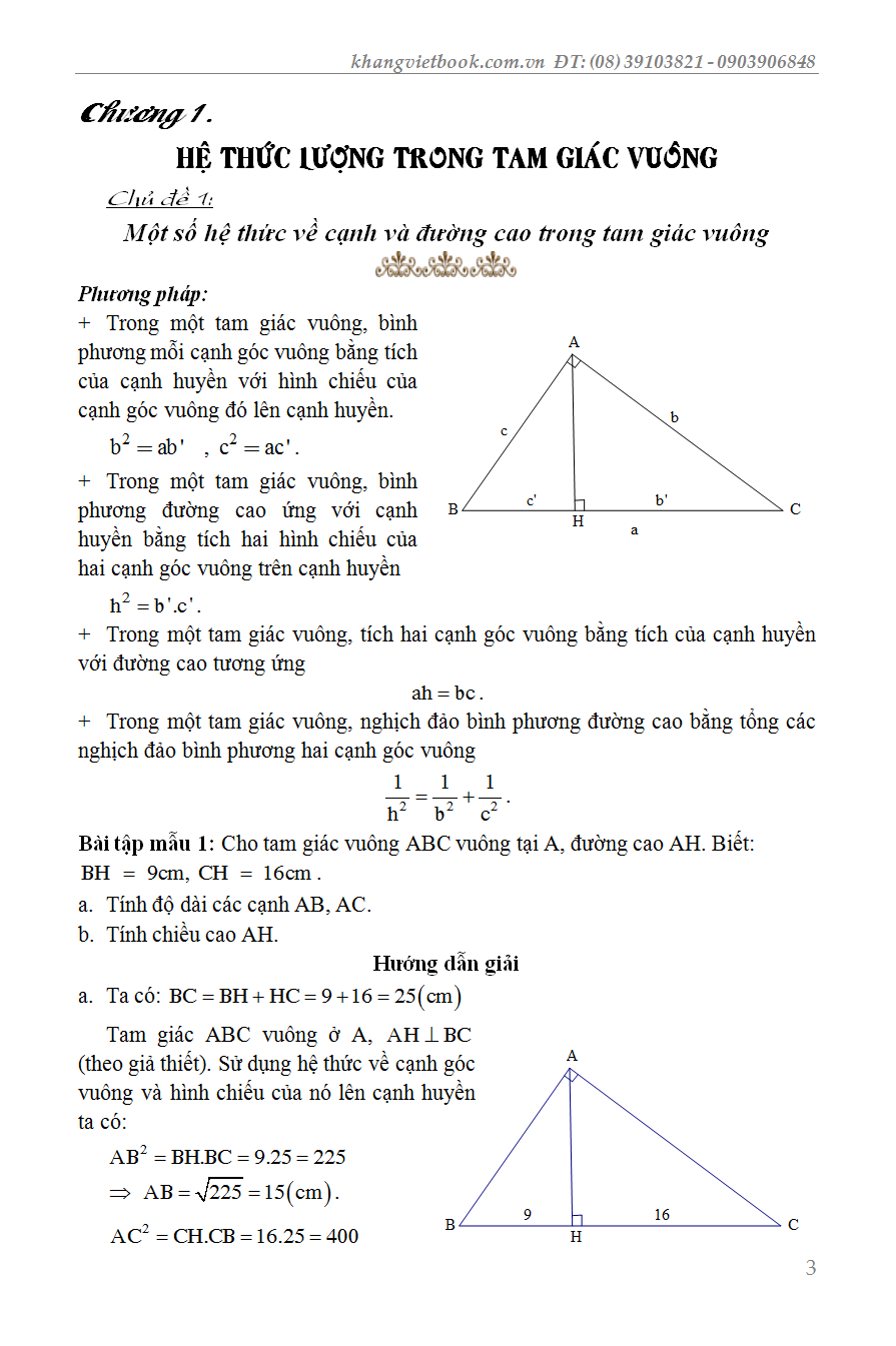 Chương I: Hệ thức lượng trong tam giác vuông