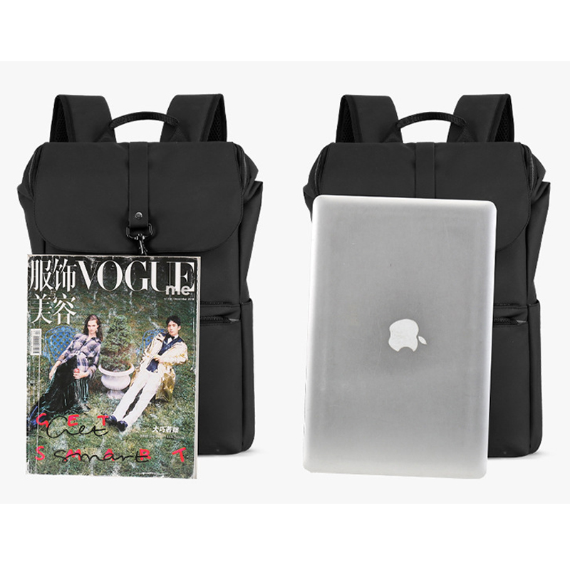Chiếc Balo laptop nam nữ 15”, ba lô đi làm, đi học đựng máy tính 15inch ngăn trước khoá gài với thiết kế dáng đứng cùng chi tiết ngăn trước khoá gài phối da vân tạo