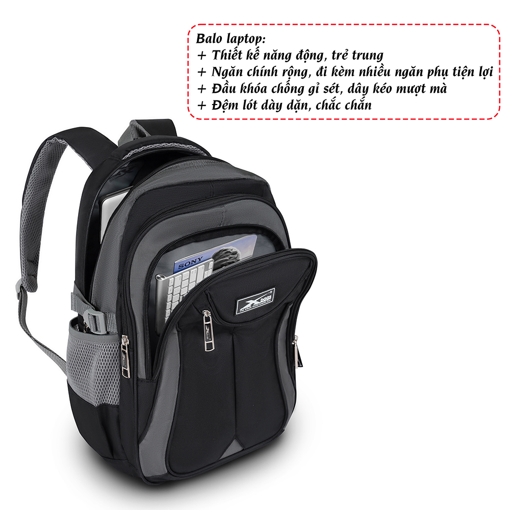 Kích thước: rộng 37cm X cao 59cm X dày 18cm Trọng lượng: 0.7 kg Dung tích: laptop 16 inch Màu sắc: Xám, Đen, Xanh Phương pháp sản xuất: công nghệ cao Chất liệu : Vải
