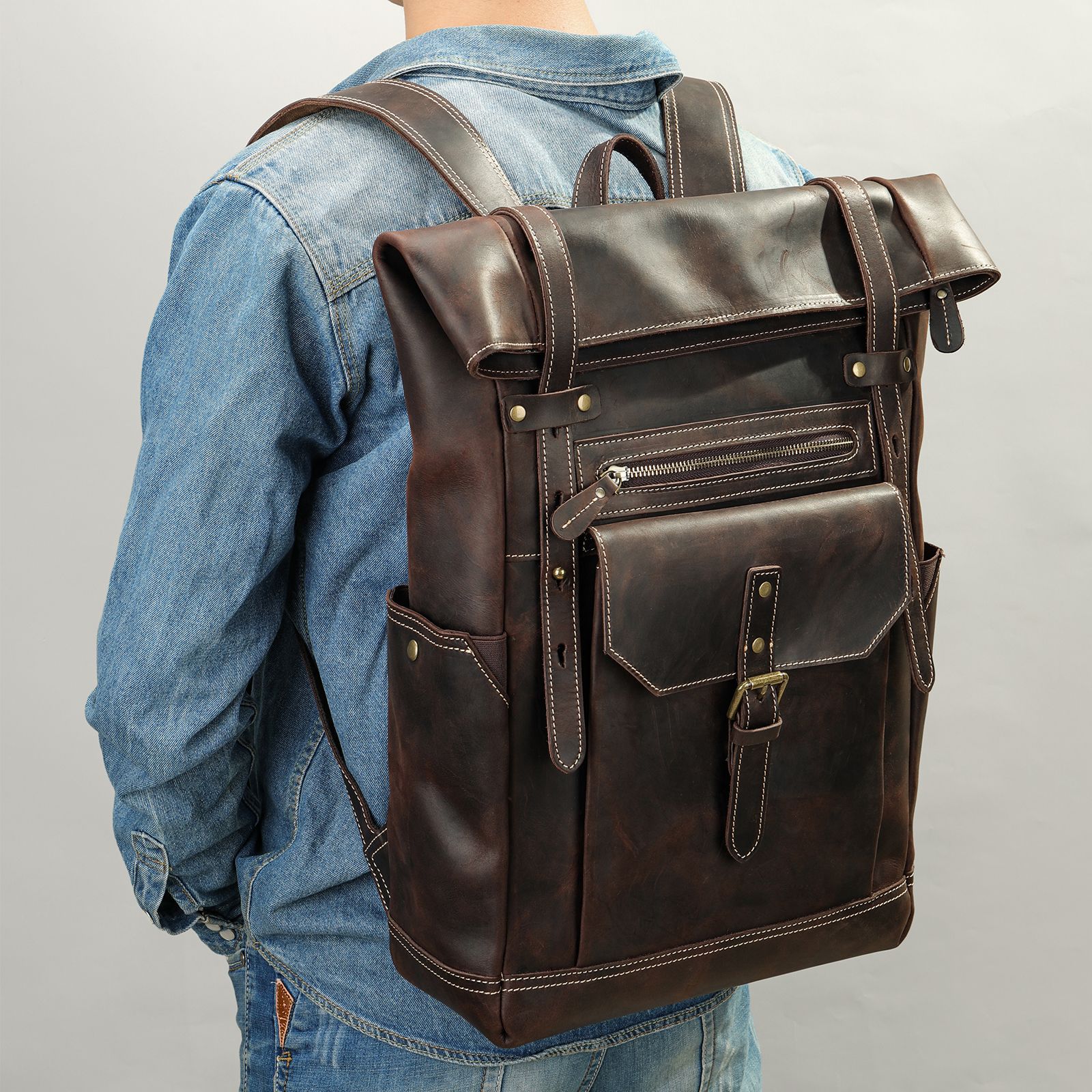 Ba lô nam da bò thật BHM9251 Vừa laptop 13.3inch