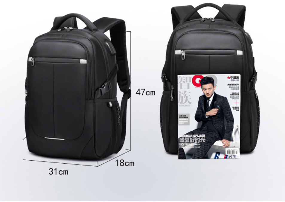 Kích thước : rộng 31cm ,cao 47cm,dày 18cm Phong cách : châu âu Phương pháp sản xuất: công nghệ cao Chất liệu : Vải OXFORD được mã hóa SIÊU CHỐNG THẤM NƯỚC Chức năng: Không thấm nước, thoáng khí, chống mài mòn, làm sáng, chống sốc,sạc usb tiện dụng thiết kế : trẻ trung ,sang trọng