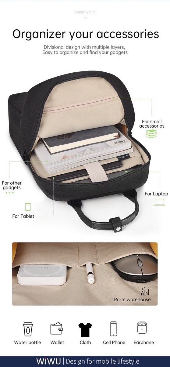 ✨Balo Wiwu Ora Backpack Dành Cho Điện Thoại Di Động, Máy Tính Bảng, Macbook, Laptop Được Làm Bằng Chất Liệu Chống Thấm Nước, Sức Chứa Lớn - Hàng Chính Hãng