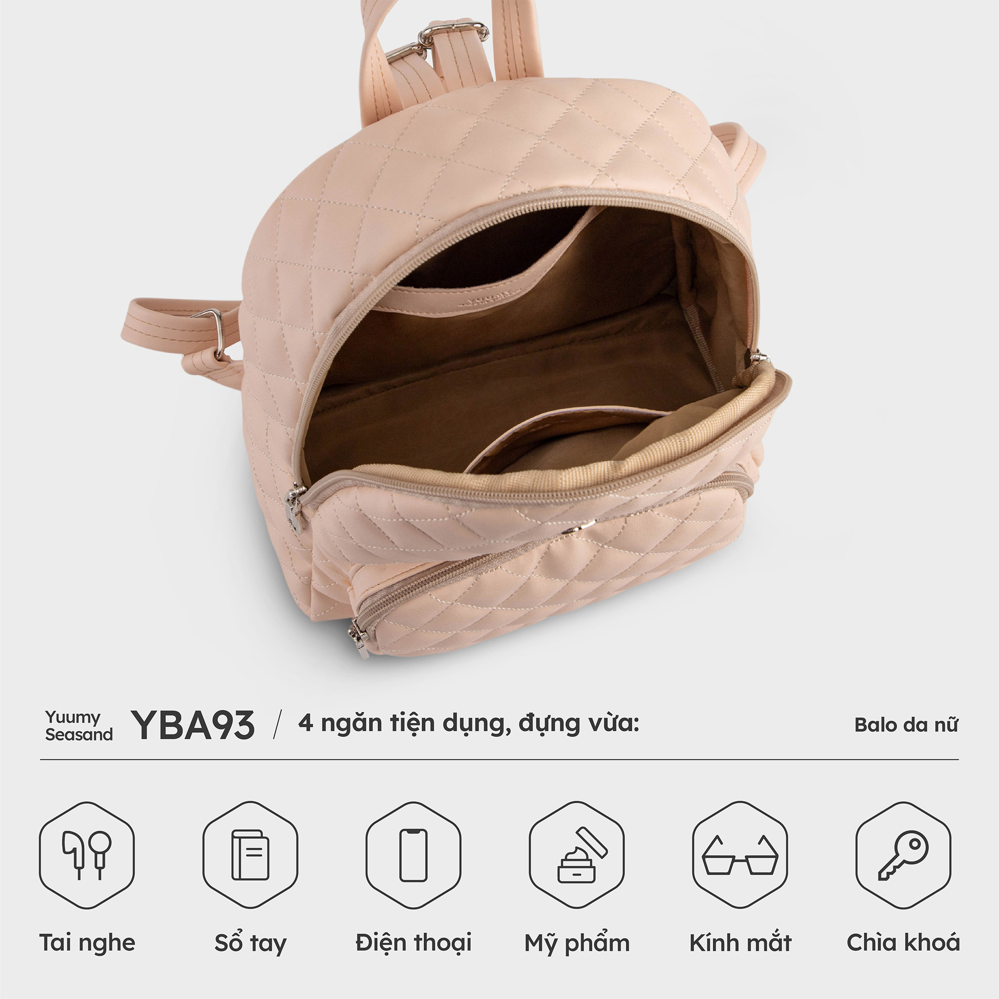 Balo da nữ Yuumy Seasand YBA99 với tone màu cơ bản theo phong cách basic giúp bạn dễ dàng phối hợp với nhiều kiểu trang phục khác nhau. Chiếc balo có kiểu dáng nhỏ gọn,