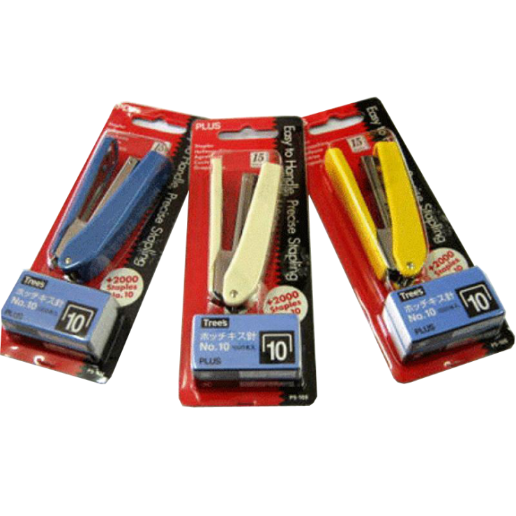 Bấm kim 10 Plus PS-10E Stapler - Bấm được 15 tờ - Có nhiều màu : trắng, đỏ, xanh lá, xanh dương, vàng Đóng gói : hôp 10 cái - bán lẻ từng cái Hãng