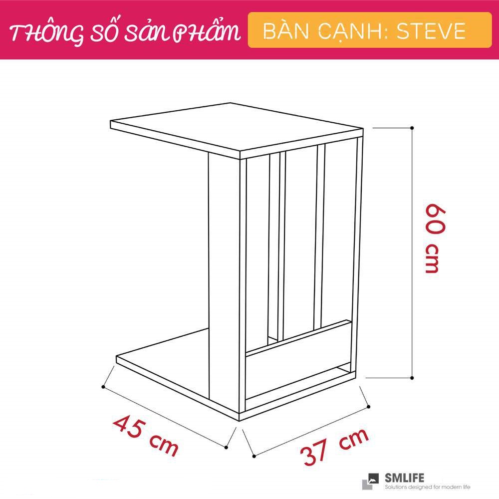 Mua tại TiktokBàn gỗ cạnh Sofa hiện đại SMLIFE Steve ngày càng được ưa chuộng sử dụng tại các căn hộ chung cư hiện đại. Thiết kế đơn giản pha trộn những nét độc đáo giúp bạn có thểm nhiều không gian để tổ chức gọn gàng các vật dụng như sách báo, remote tivi, đồ trang trí …. Sử dụng vật liệu ván ép công nghiệp MDF chống ẩm phủ Melamine cao cấp giúp bàn gỗ cạnh Sofa SMLIFE có độ bền cao, chống trầy và chống ẩm rất tốt. Bạn có thể tự lắp đặt sản phẩm dễ dàng với các phụ kiện và hướng dẫn đi kèm.