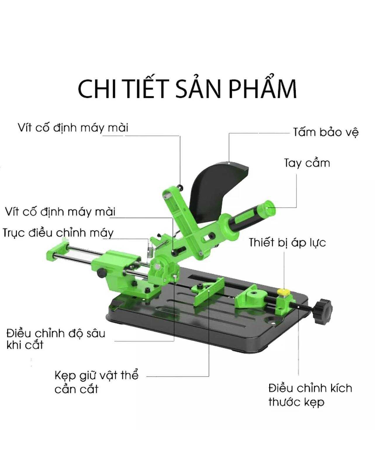 Thông tin cơ bảnChi tiết sản phẩmĐEM CẢ THẾ GIỚI ĐẾN NGÔI NHÀ CỦA BẠNBỘ BÀN CẮT TRƯỢT GẮN MÁY MÀICắt hiệu quả gấp 7 lầnCẮT MỌI CHẤT LIỆUCắt tôn , gỗ , sắt , thép , lưỡi B40,...Đĩa cắt 4 inch t...