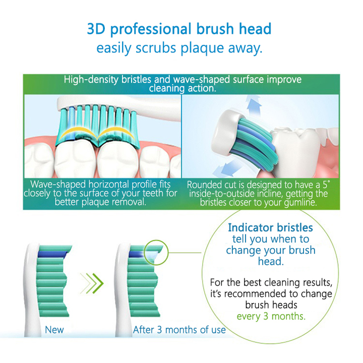 - Công nghệ sóng âm Sonic (Sonicare): Tạo ra tới 62.000 chuyển động bàn chải mỗi phút (31.000 rung động/phút), tạo ra các bong bóng siêu nhỏ chứa kem đánh răng và nước, len lỏi